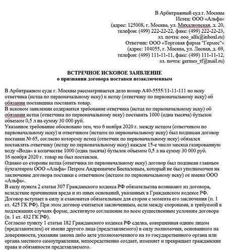 Встречный иск о незаключенности договора: Правовые аспекты и примеры